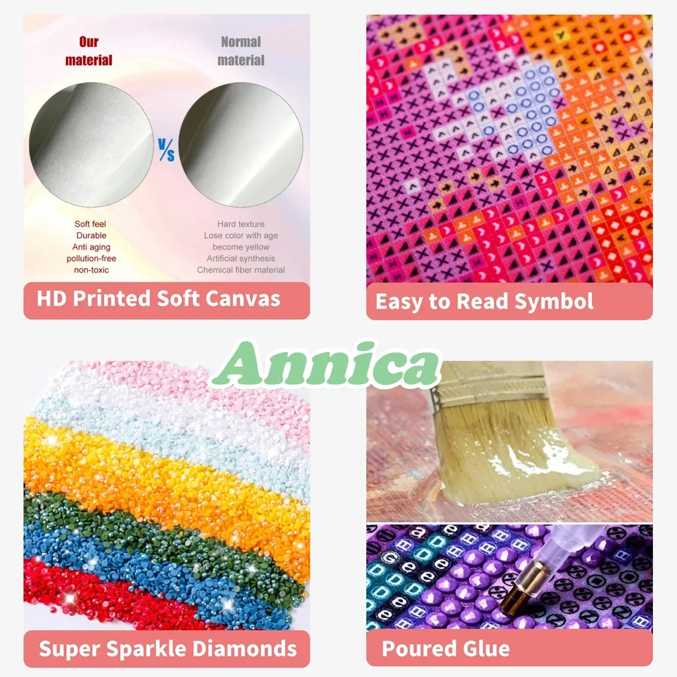Super Sparkle Diamond,HD Printed Soft Canvas,Easy to Read Symbol,Poured Glue Strongly Sticky, 20% More Diamonds.